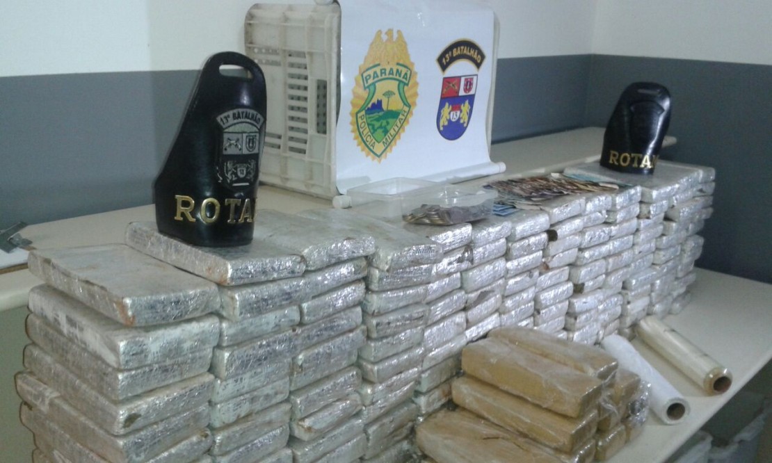 Aproximadamente 150 quilos de maconha foram apreendidos por policiais militares na noite desta quinta-feira (5) numa pensão na Rua José Alcides de Lima, bairro Capão Raso, em Curitiba. Segundo os policiais, o local era usado como depósito de droga. Quatro pessoas, dois jovens de 19 anos, um de 23 e um homem de 33 anos, foram presas.