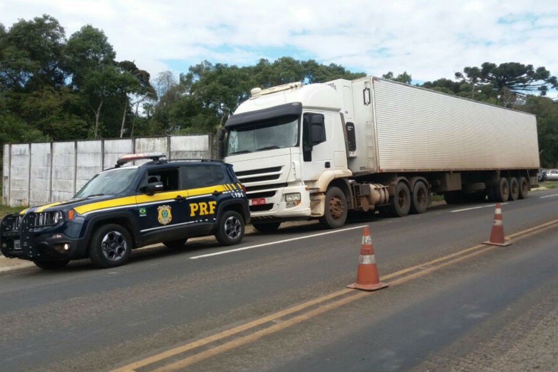 A primeira carreta transitava pela BR-373 em Ponta Grossa. O motorista ainda acelerou e quase atropelou os policiais, mas eles não se feriram. O homem fugiu para dentro de uma área de mata e não foi localizado.
