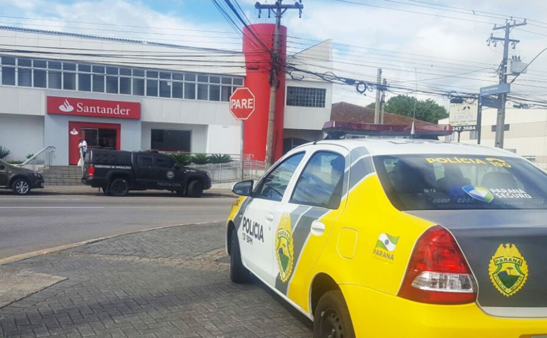 Bandidos quebraram a parede de uma agência do banco Santander da Avenida Brasília, no Novo Mundo, em Curitiba, na madrugada desta quinta-feira (9). Eles teriam violado um dos cofres do local, mas os policiais só descobriram a ação por volta das 9h e não tiveram sequer como encontrar os assaltantes.