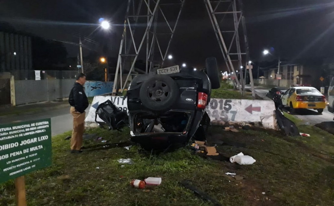 Enquanto seguiam o carro roubado, os policiais pediram apoio para que fosse fechado o cerco na região. No momento em que os bandidos já estavam na Rua Wilson Dacheux Pereira, já no bairro Alto Boqueirão, o homem que estava ao volante perdeu o controle da direção. O carro colidiu contra uma base de concreto, capotou e os dois marginais ficaram presos às ferragens.