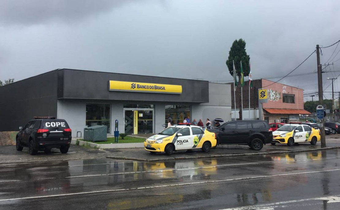 Cinco bandidos armados e encapuzados invadiram uma agência do Banco do Brasil localizada na Avenida Brasília, no bairro Novo Mundo, em Curitiba, no final da manhã desta sexta-feira (12), por volta das 11h30. A ação durou apenas dois minutos mas assustou quem estava no local. Foi o segundo assalto a banco na capital só nesta sexta.