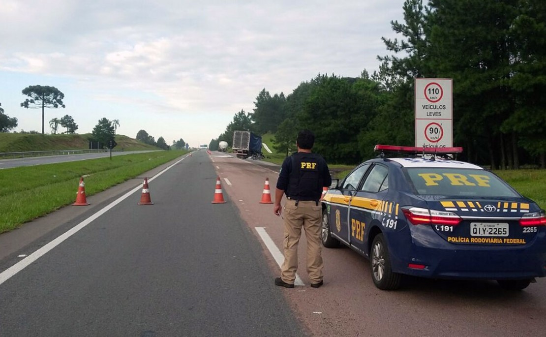 Uma colisão traseira entre dois caminhões deixou uma pessoa em estado grave e causou vazamento de produto perigoso, gás propano, no quilômetro 74 da BR-116, trecho do Contorno Leste, sentido Santa Catarina. O acidente, que gerou bloqueio total da via, ocorreu por volta das 5h da manhã desta terça-feira (19), em Quatro Barras, região metropolitana de Curitiba. No entanto, a rodovia só foi completamente liberada por volta das 13h30.