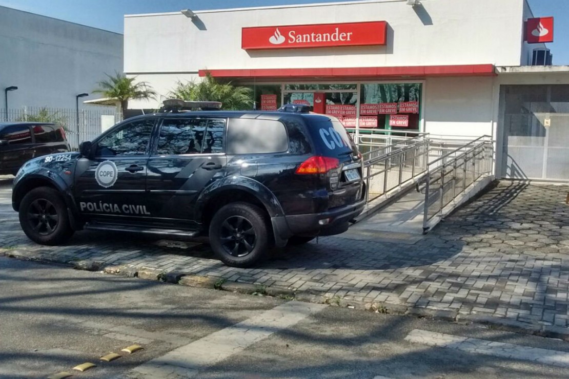 Um caixa eletrônico de uma agência do Santander, no Centro de Campo Largo, foi arrombado por bandidos na manhã deste domingo (25).