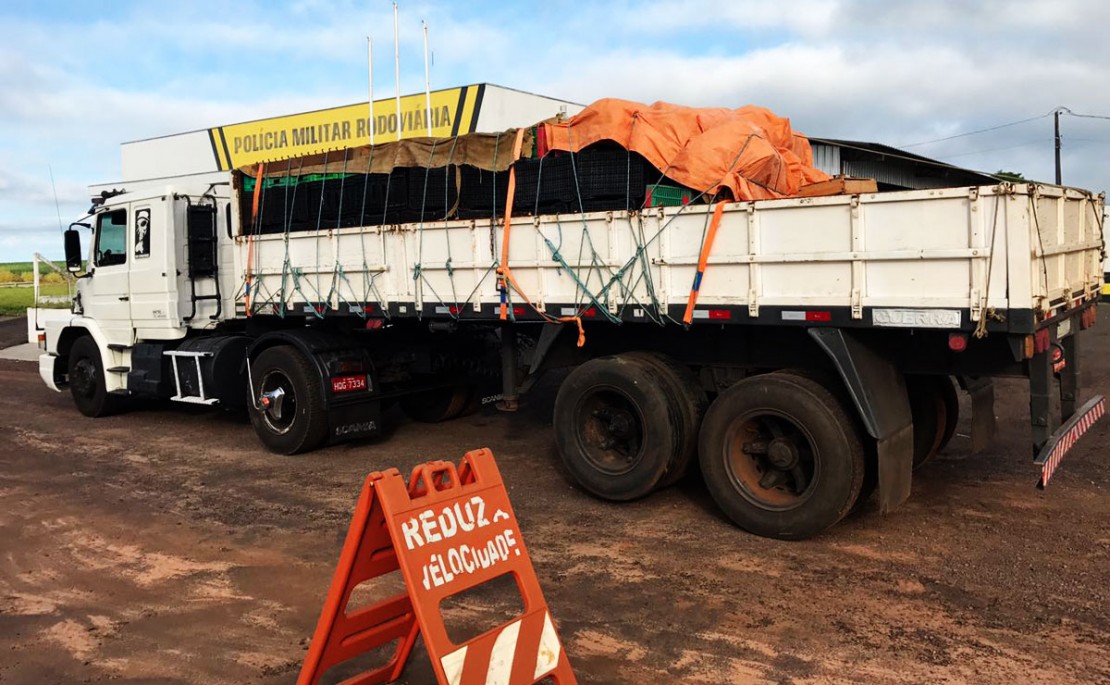 Conforme a Polícia Militar, a abordagem foi por volta das 8h numa operação de fiscalização do Batalhão de Polícia Rodoviária (BPRv) na estrada. O caminhão tinha placas de Chapada, no Rio Grande do Sul, e estava preso ao semi-reboque, que tinha placas de Cuiabá, no Mato Grosso.