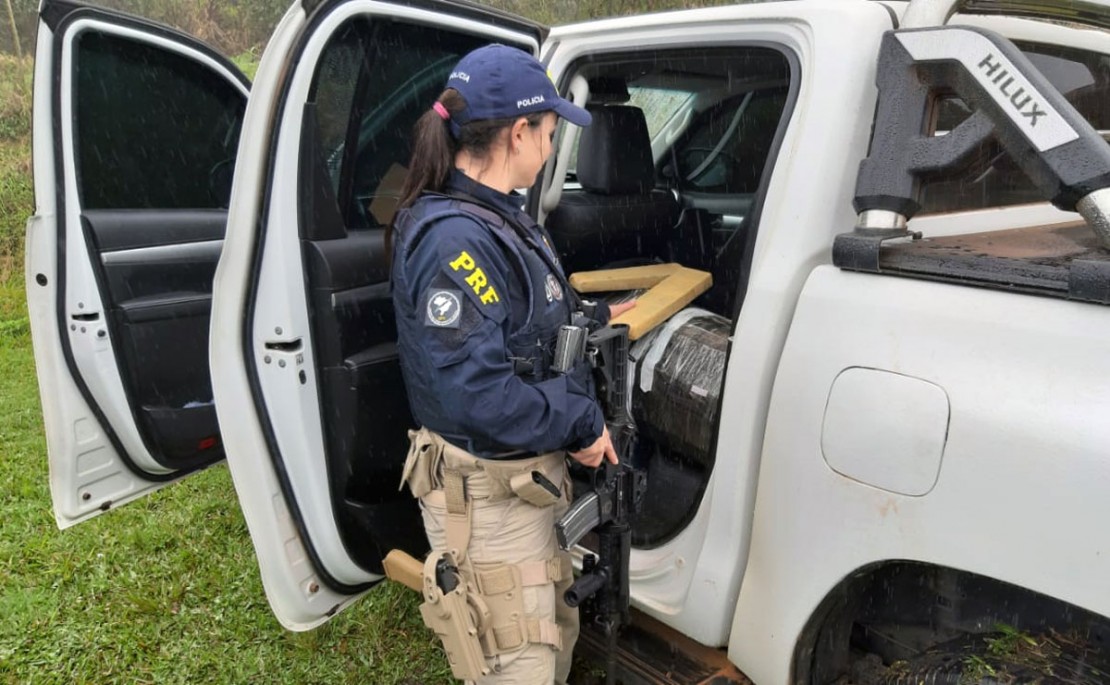 A Polícia Rodoviária Federal (PRF), em conjunto com a Polícia Civil, apreendeu 167 quilos de maconha em uma caminhonete na região de Morretes, no litoral do Paraná, no fim da tarde desta segunda-feira (26). A apreensão aconteceu mesmo o motorista do veículo utilizando uma técnica digna dos filmes de James Bond para tentar despistar os policiais durante a perseguição, registrada na BR-277.