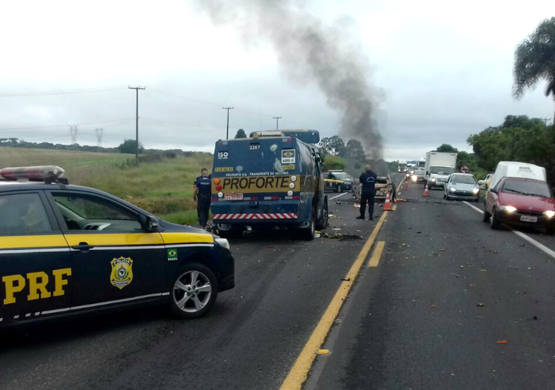 Bandidos armados explodiram um carro-forte na manhã desta sexta-feira (5). A ação foi no quilômetro 164 da BR-476, a Rodovia do Xisto, entre Araucária e Contenda, na Região Metropolitana de Curitiba (RMC). O valor levado pelos bandidos não foi informado pela empresa responsável.