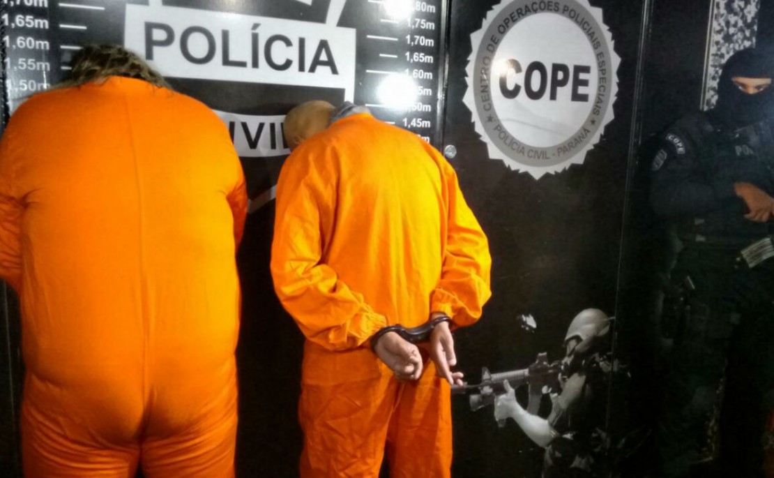 O homem e mulher estão presos no setor de carceragem temporária do Cope, à disposição da Justiça. Virados para a parede, vestidos com macacões laranja – cor associada à criatividade, mas que, neste caso, uniformiza a criminalidade – eles evitaram se mostrar. Talvez quisessem esconder a frustração de saber que podem pegar até 15 anos de prisão.