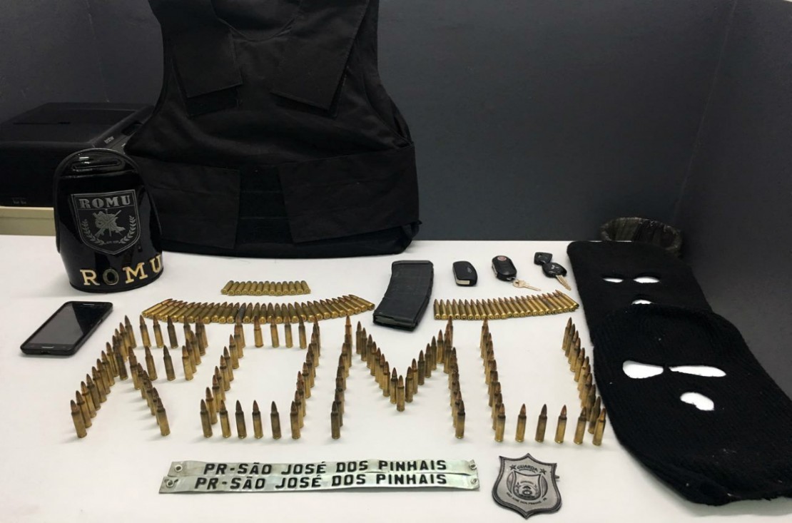 Duas pessoas foram presas, três carros recuperados e muita munição de grosso calibre foram apreendidas por guardas municipais da equipe especial de Rondas Municipais, (Romu), da Guarda Municipal de São José dos Pinhais.