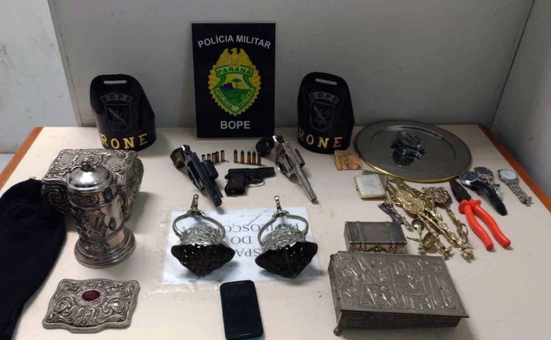 Com a dupla, os policiais encontraram alguns objetos roubados. Uma das armas tinha registro e tinha sido levada em outro assalto, em outubro, em uma das casas que os bandidos voltaram na noite desta quinta-feira. Tudo foi entregue à Polícia Civil e os corpos dos dois homens foram recolhidos ao Instituto Médico-Legal (IML) de Curitiba.