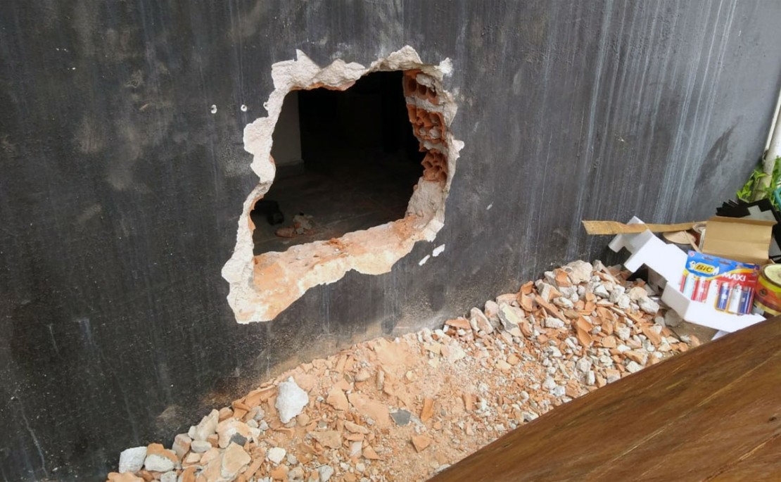 Dentro da loja, os bandidos invadiram outra sala também quebrando a parede. Eles foram direto ao local onde estavam os cofres. “Um eles tiveram tempo de detonar no local, o outro levaram. Também pegaram o estoque de cigarros, mas não foram para a frente da loja de conveniência porque sabiam que as câmeras iriam registrá-los”.