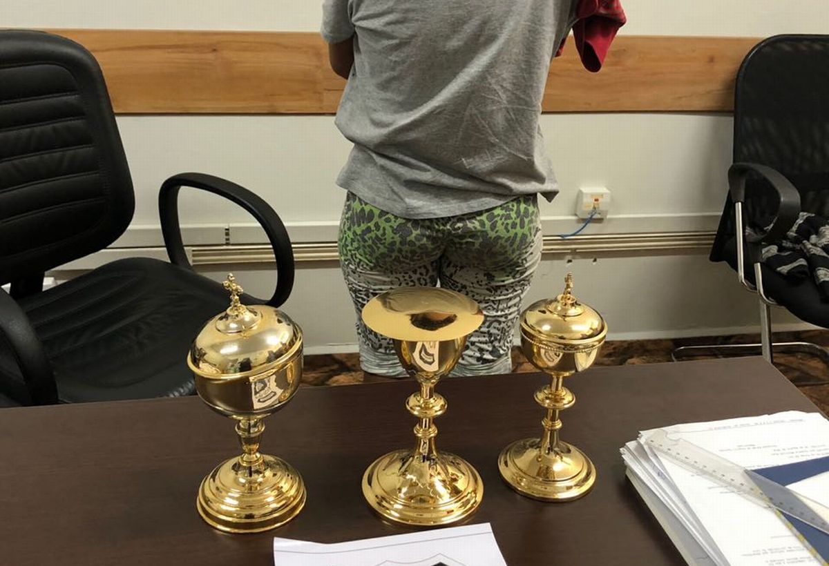 A Polícia Civil explicou que a mulher agiu durante um momento de adoração (orações) dentro da capela da igreja. Aproveitando que a sacristia ficou vazia, já que todos os fiéis estavam rezando, ela entrou na sala, revistou os armários e furtou quatro objetos sacros de valor, como um cálice de distribuição das hóstias, banhada a ouro. “Os objetivos foram avaliados em cerca de R$ 2,5 mil”, disse Lima.