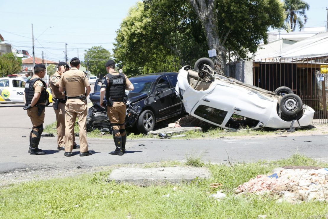 Uma perseguição policial terminou em um acidente envolvendo populares no bairro Cajuru no início da tarde desta terça-feira (6). Segundo testemunhas, um veículo Sandero branco roubado, com dois ocupantes, estaria fugindo da polícia pela Rua Arábia quando atravessou a preferencial na Rua Jordânia e ocasionou o acidente na esquina entre as duas vias.