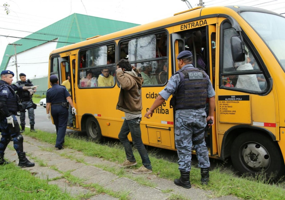 Em nova operação realizada nesta terça-feira (17), na linha de transporte coletivo Alferes Poli, em Curitiba, 23 pessoas que estavam dentro do coletivo, sem pagar passagem, foram encaminhadas ao 1.º Distrito Policial para assinar um Termo Circunstanciado devido a invasão.