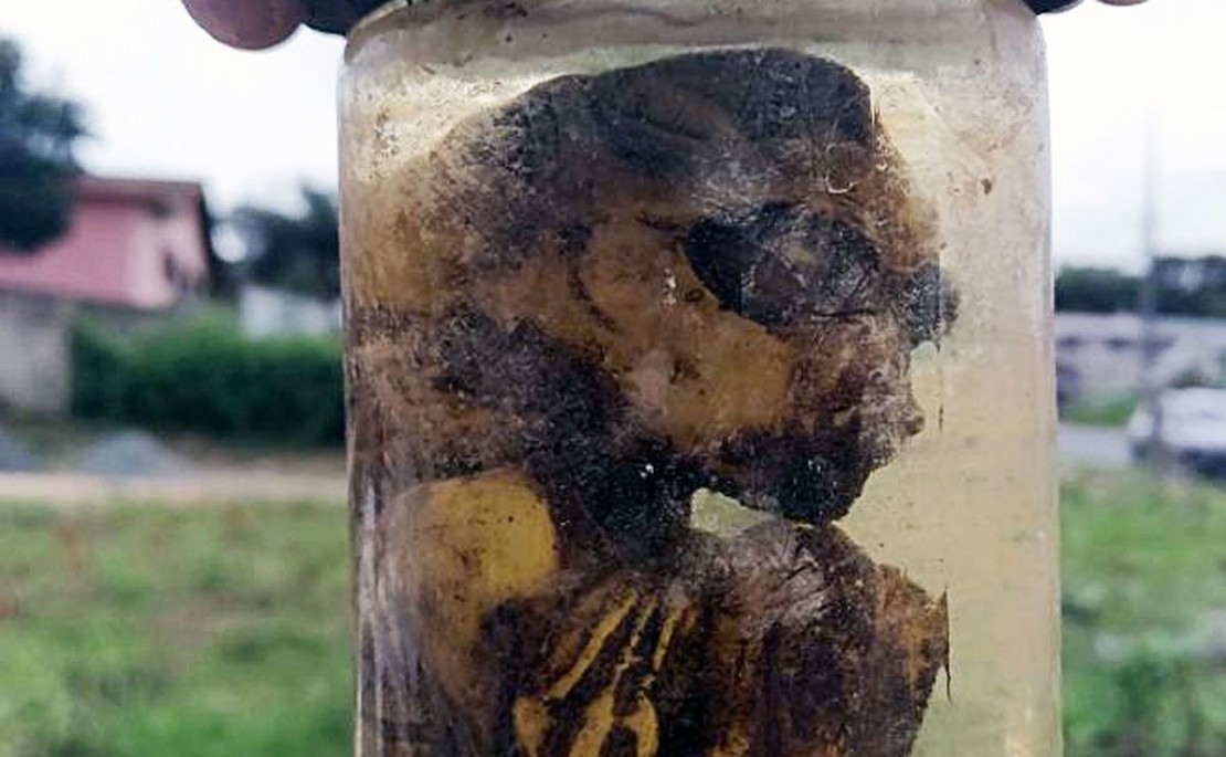 Os policiais militares confirmaram a situação, mas com estranheza, pois o feto parecia um pouco diferente do comum. Sem conseguir identificar ao certo o que era o que estava dentro do vidro, que tem um tamanho de uma garrafa pequena, os policiais acionaram o Instituto Médico-Legal (IML), que recolheu o vidro.