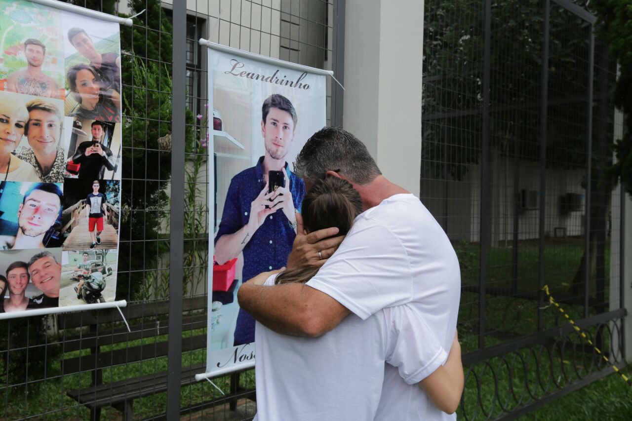 O crime aconteceu durante a tarde do dia 17 na Travessa Paulo Paqualin, bairro Colônia Rio Grande, quando três bandidos renderam a empregada da família. “Meu filho mais velho Bruno estava no carro fora de casa com a namorada e acelerou o veículo quando viu os assaltantes. Eles atiraram contra ele e o Leandro saiu do quarto dele pra ver o que estava acontecendo. O Bruno conseguiu desviar dos tiros, mas o Leandro não teve chance”, disse o pai Carlos Alberto Cobbo, muito abalado.