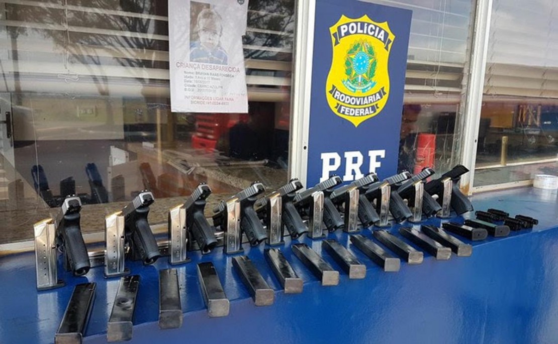 Nove pistolas são da marca Smith & Wesson, fabricada nos Estados Unidos, e uma da marca brasileira Taurus. Todas estavam com os números de série suprimidos. O motorista, de 20 anos de idade, foi preso em flagrante por tráfico internacional de armas de fogo. A PRF encaminhou a ocorrência para a Delegacia da Polícia Federal em Foz do Iguaçu.