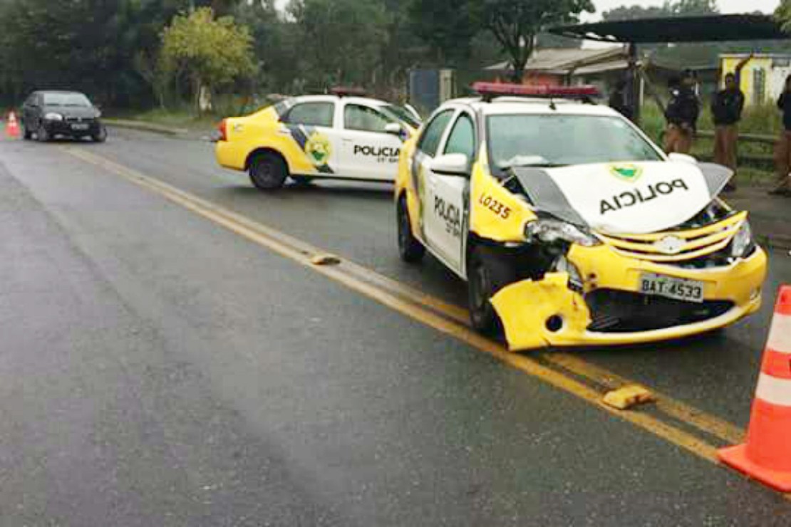 Conforme a PM, a viatura seguia pela Rua João Dembinski, quando o condutor do Siena cruzou a preferencial. O rapaz atingiu o carro da PM e o policial que dirigia não teve tempo de desviar.