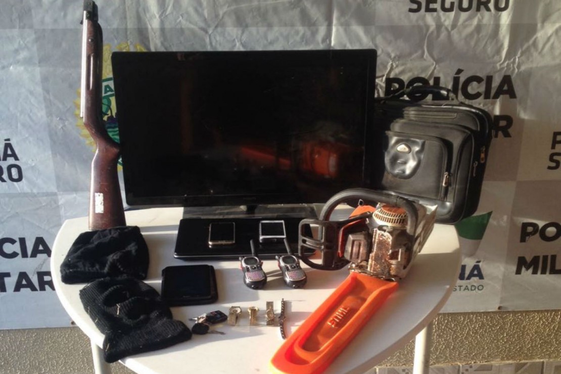 Após consultas, a polícia descobriu que o veículo usado na fuga possuía alerta de roubo. No interior do carro foram encontrados vários objetos como relógios, pulseiras, notebooks, tablet, aparelhos celulares, rádios comunicadores, uma motosserra, balaclavas e uma arma. Todos os produtos e o carro foram levados para a Delegacia de São José dos Pinhais.