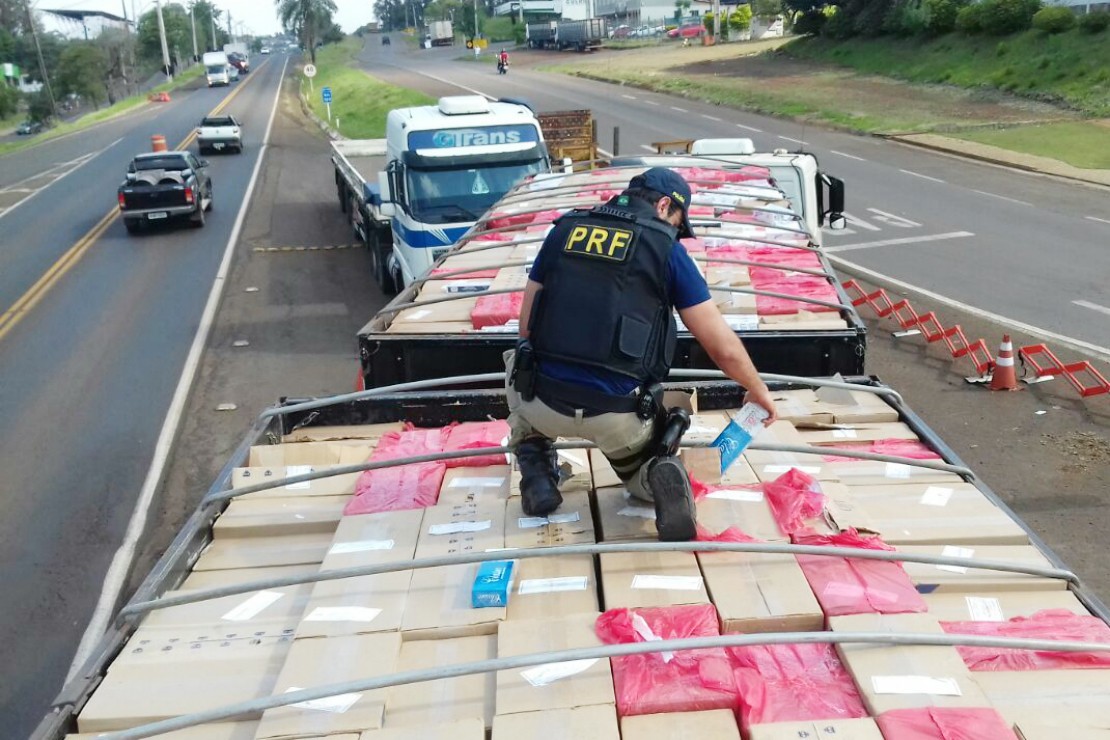 Avaliada em mais de R$ 3,3 milhões, a carga ilícita era transportada por uma carreta bitrem, abordada por uma equipe da PRF na BR-158.