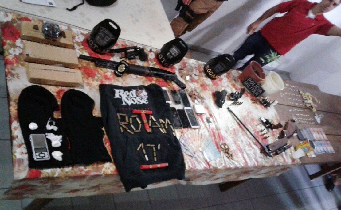 Durante a operação, os policiais apreenderam um revólver calibre 32, três de calibre 38 e uma espingarda. Mais de 60 munições de vários calibres também foram recolhidas. Também foram apreendidos dois pés de maconha e mais de quatro quilos da droga, além de cocaína, 79 pedras de crack.