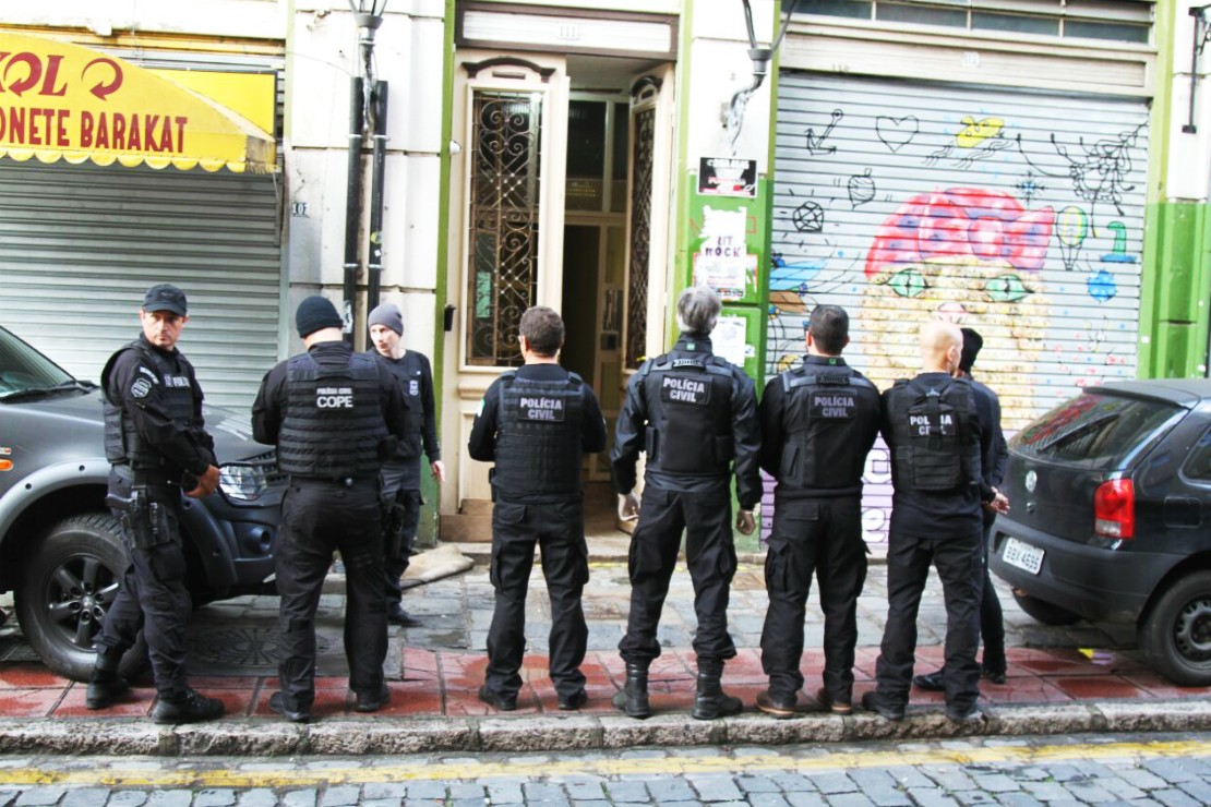 Mais de 50 policiais civis do Centro de Operações Policiais Especiais (Cope) estiveram nas ruas do bairro Centro, em Curitiba, na manhã desta quarta-feira (24). A ação teve o objetivo de encontrar drogas e suspeitos de tráfico que se hospedam em hotéis e pensionatos da região. Três pessoas foram presas em flagrante e dois mandados de prisão foram cumpridos.