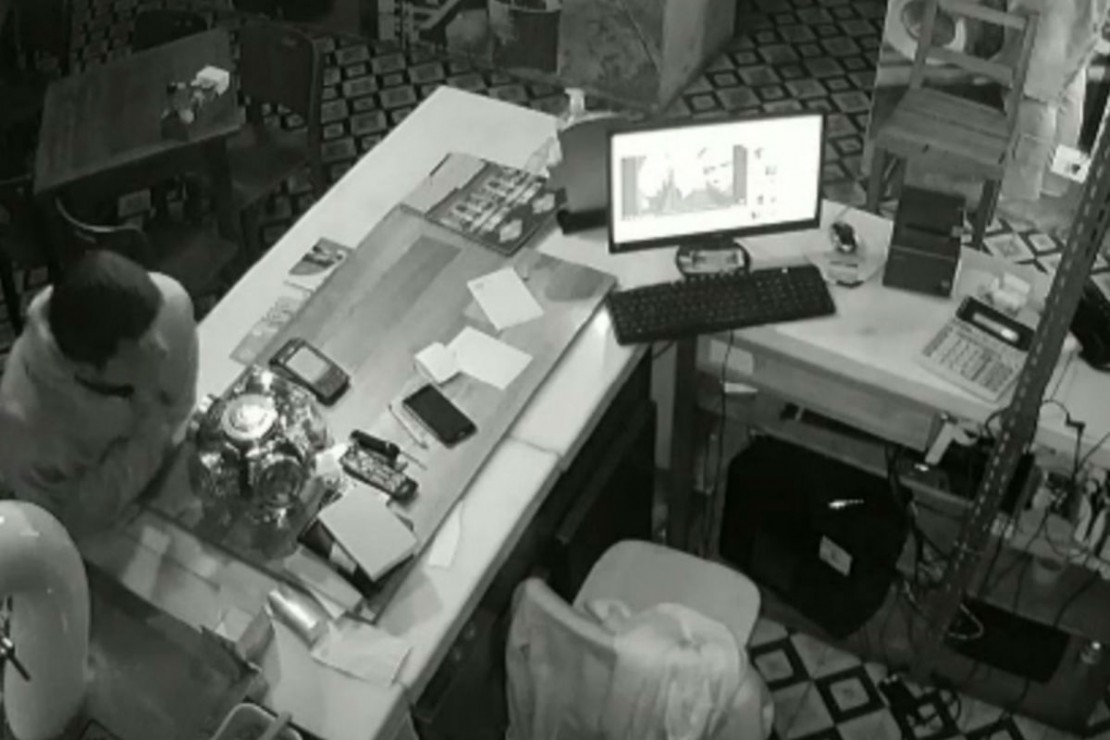 Já na segunda ação, um indivíduo está aguardando o atendente de um bar no dia 20 de maio por volta das 20h. No entanto, diante da demora do funcionário, o rapaz olha para os lados, pega o celular que está em cima da mesa, o esconde no bolso e foge.