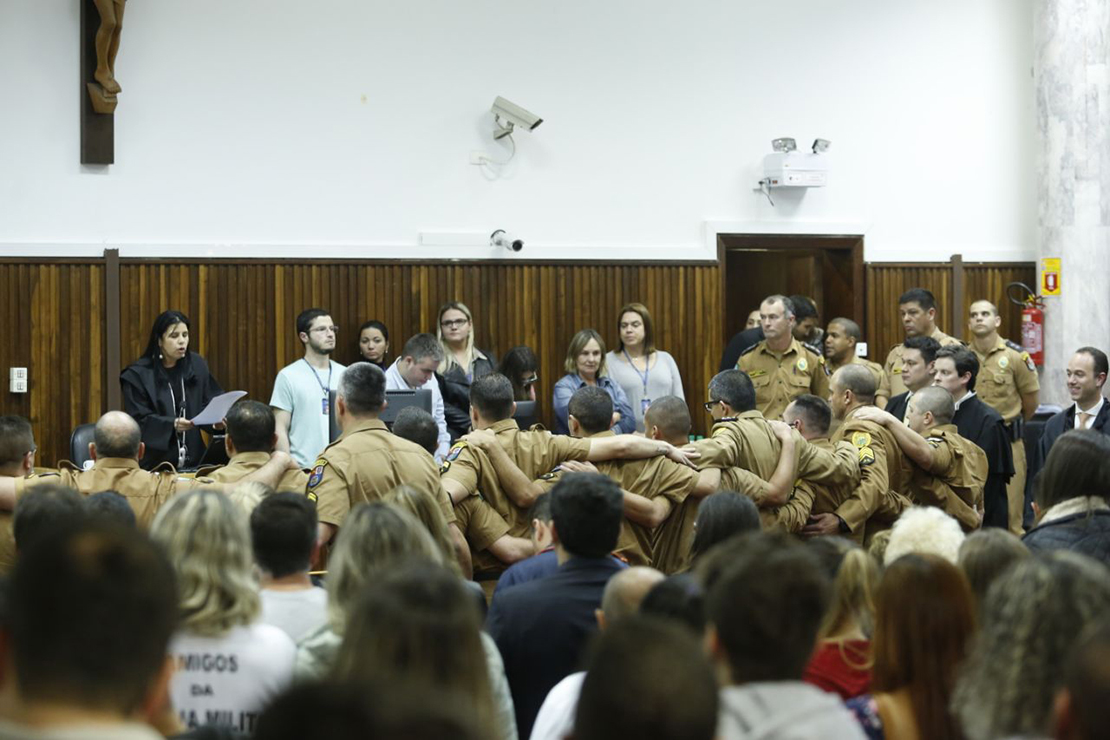 No total, 14 policiais foram acusados pelo MP-PR, mas um deles morreu anos depois do caso. O julgamento começou na última quarta-feira (4). Nos dias que se seguiram, foram ouvidas 37 testemunhas, 27 delas de defesa. Para o advogado dos policiais, Claudio Dalledone Júnior, que em dias anteriores chegou a falar sobre uma possível anulação do julgamento, o resultado foi satisfatório.