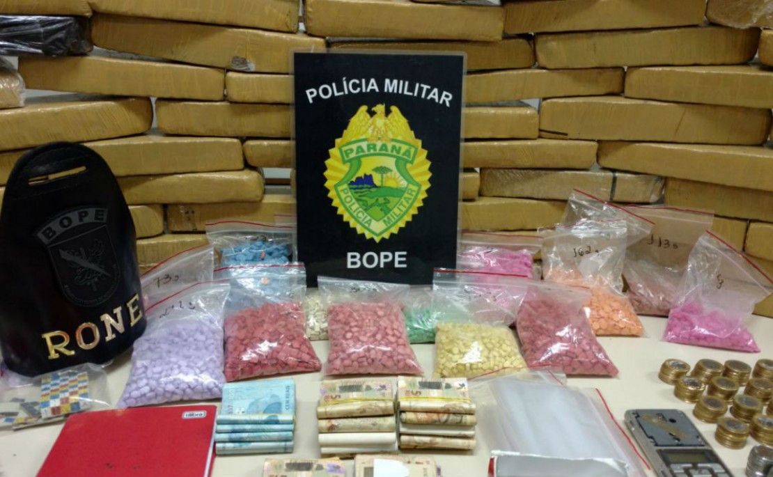Um trabalho intenso de policiais da Rondas Ostensivas de Natureza Especial (Rone), da Polícia Militar (PM), acabou em apreensão de mais de 40 quilos de maconha, grande quantidade de ecstasy e mais de R$ 30 mil em dinheiro nesta sexta-feira (9). A ação dos policiais aconteceu em pelo menos três bairros de Curitiba e prendeu cinco pessoas, além de um adolescente que foi apreendido.