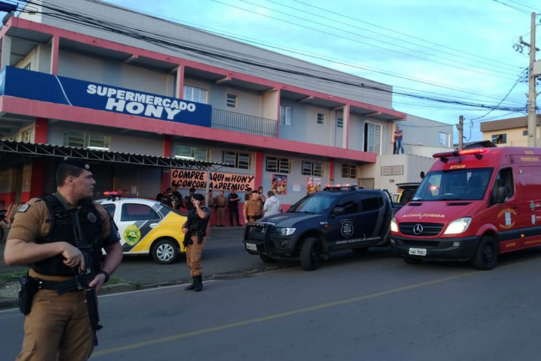 Um policial militar e dois suspeitos ficaram feridos em uma troca de tiros na tarde desta terça-feira (21) em Araucária, na Região Metropolitana de Curitiba. A situação aconteceu durante uma tentativa de assalto a um supermercado localizado na Rua Gavião, no bairro Capela Velha. Segundo informações de testemunhas, o policial – que estava de folga – fazia compras no local quando percebeu a ação dos bandidos e reagiu.