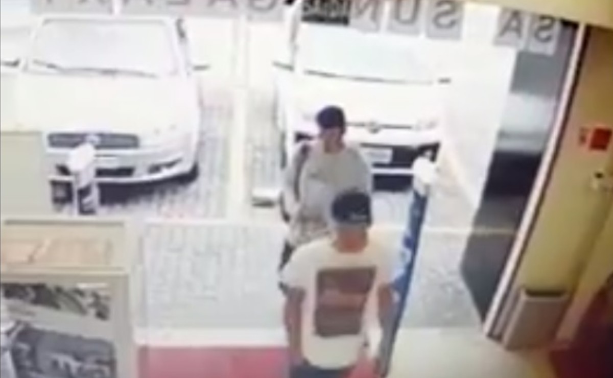 Em uma das ações, dois rapazes investem contra uma loja localizada em um centro comercial na rua Alberico Flores Bueno, no Bairro Alto, em Curitiba.