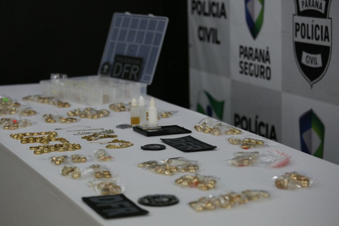 Diversas correntes arrebentadas, pulseiras e cerca de 400 alianças. Esses foram os produtos apreendidos na última quinta-feira com uma quadrilha especializada em receptação de joias. Os cinco homens envolvidos foram presos pela Delegacia de Furtos e Roubos (DFR) no Centro de Curitiba e agora responderão por receptação e associação criminosa.