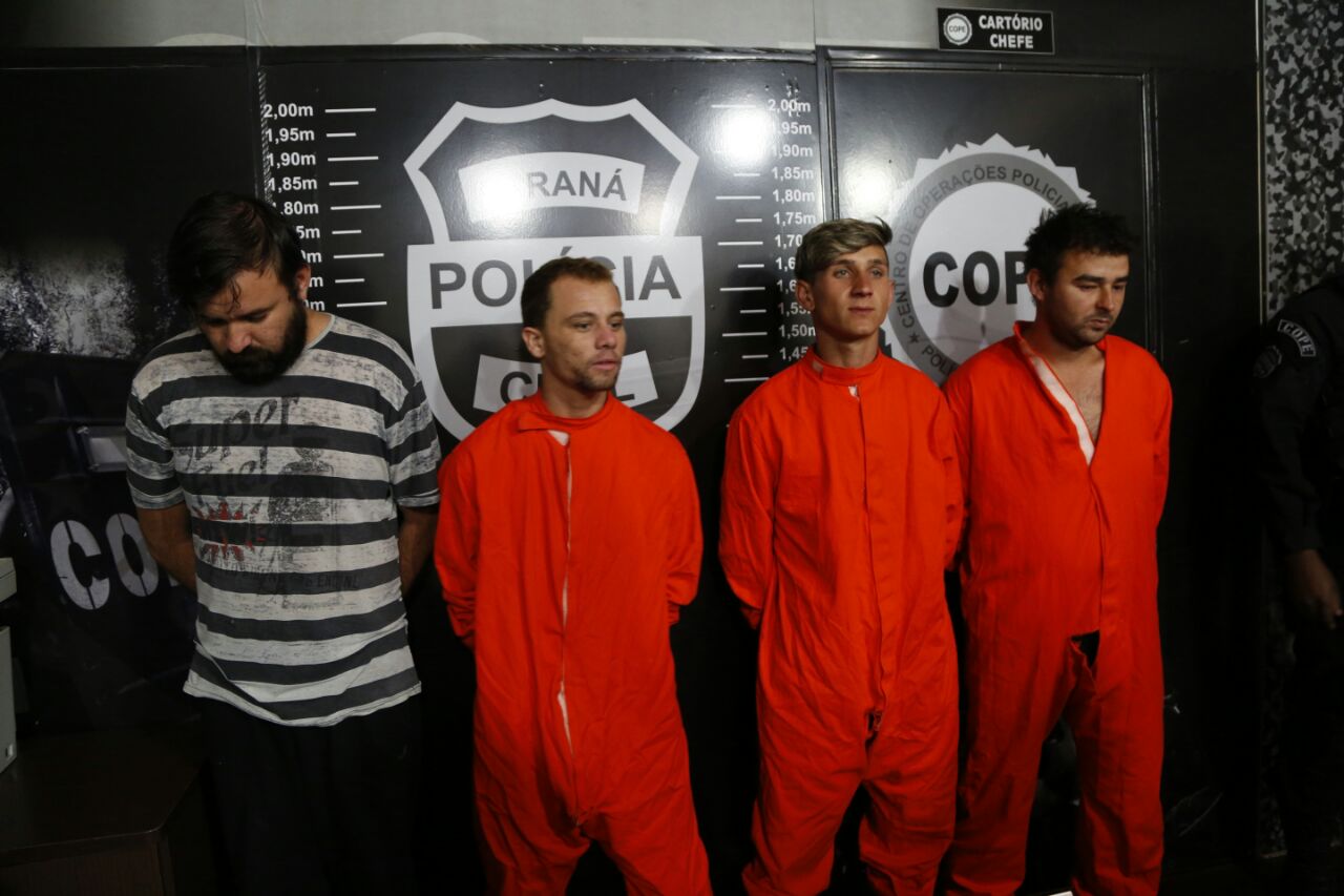 Ainda estão foragidos dois suspeitos: Alesson Dilmar Cordeiro, dono de uma oficina onde os veículos eram adulterados e as armas guardadas; e Cristiano Marinhak, o “Tiana”. Na oficina de Alesson, de acordo com o delegado, os carros foram “preparados” para a ação. “Uma Doblo estava com várias chapas de aço dentro do veículo, simulando uma blindagem, já prevendo um confronto com armas de grosso calibre”. Os carros eram roubados; e dois membros da quadrilha foram reconhecidos pelas vítimas.