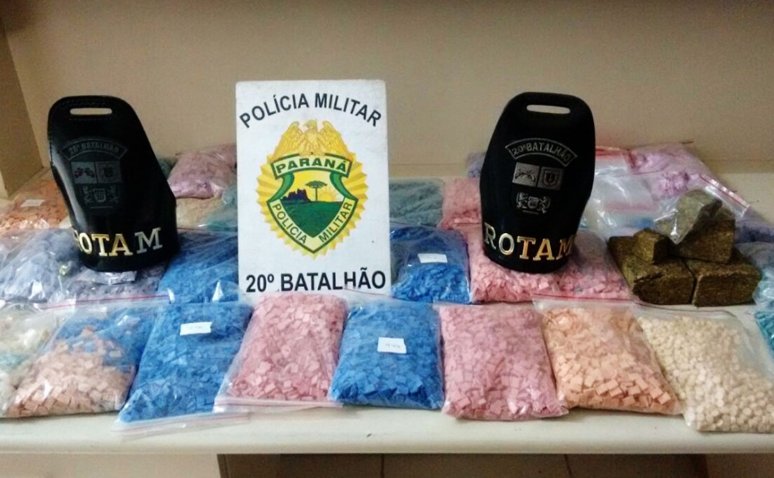 Na abordagem, os policiais encontraram alguns comprimidos de ecstasy. O rapaz acabou colaborando com os PMs e, na casa deles, foram encontrados mais de 800 gramas de maconha e pelo menos 28 mil comprimidos. Contabilizando, os policiais acreditam que a droga poderia render R$ 1.500.000. O rapaz e a droga foram encaminhados ao Centro Integrado de Atendimento ao Cidadão (Ciac) Sul, no Portão.