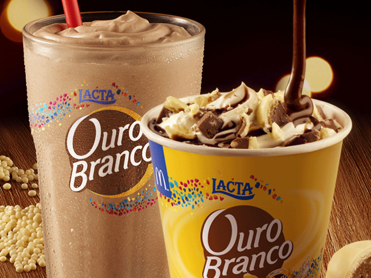 O McFlurry Ouro Branco é composto por mix de baunilha, cobertura de chocolate e deliciosos pedaços de Ouro Branco picado, enquanto o McShake traz leite, cobertura de chocolate e complemento sabor Ouro Branco com mix de baunilha.