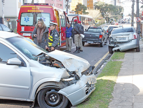 Um casal ficou ferido ao se envolver num acidente de trânsito, pouco antes das 15h de ontem, na Rua Martim Afonso, próximo à Rua Bruno Filgueira, Bigorrilho. Robson Carlos Kutesk, 31 anos, e Josiane Gomes de Oliveira, 27, estavam no Astra placa AJG-4105, que colidiu na traseira do Sentra, AVE-2823.