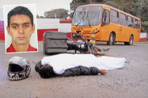Um grave acidente tirou a vida de um motociclista no início da tarde de ontem, no Pilarzinho. Vilmar Rodrigues da Luz, 31 anos, trafegava pela Rua Fredolin Wolf sentido Santa Felicidade às 12h30, na Honda CG 125 placa APL-5933, quando foi colhido pelo ônibus, que faz a linha que tem o nome da rua.