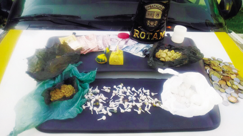 Na casa do rapaz, que morava em uma residência anexa ao bar, os policiais encontraram mais droga. Foram apreendidos 274 gramas de crack, o equivalente a mais de 800 pedras, e uma bucha grande com 190 gramas de cocaína. Com Rambo, os policiais também encontraram aproximadamente R$ 320 em dinheiro trocado.