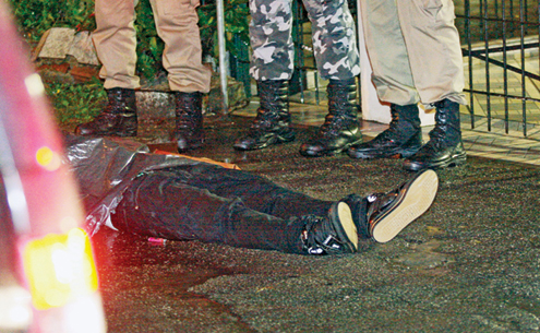 Um assaltante se deu mal ao voltar a assaltar uma pizzaria, que ele já havia roubado há duas semanas, na Rua Francisco Derosso, Xaxim. Negebaur de Andrade Junior, 19 anos, conhecido como “Nege” e quatro comparsas foram surpreendidos por dois policiais militares do serviço reservado que chegavam para pegar um lanche. Ele trocou tios com os policiais e morreu na frente do estabelecimento com uma arma na mão. Os outros conseguiram fugir.