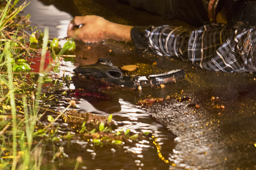 Alguns metros à frente, os guardas encontraram o carro. “A pé, os dois bandidos vinham com uma sanfona, botijão de gás e vários objetos furtados da casa”, descreveu Catini. Eles foram ao encontro dos guardas e houve a troca de tiros. Um dos suspeitos, de aproximadamente 25 anos, morreu na hora. “Com ele encontramos duas espingardas e um revólver”, disse o coordenador. O outro rapaz, gravemente ferido, foi levado ao Hospital São José sob escolta da GM. “Com ele, apreendemos um revólver calibre 38”.