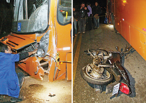 O segurança Isaías Lima de Lara, 31 anos, morreu por volta das 20h30 de sábado, na Rodovia dos Minérios, próximo ao trevo de Itaperuçu. Ele conduzia a motocicleta placa APQ-2856 (Itaperuçu), na pista sentido Curitiba, quando depois de passar sobre uma lombada, supostamente perdeu o controle da direção e colidiu de frente com um ônibus, que fazia a linha Tamandaré – Rio Branco. O vidro e parte da frente do ônibus quebraram.