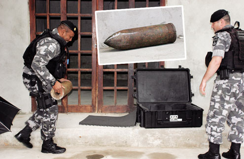 O Esquadrão Antibomba, do Batalhão de Operações Policiais Especiais (Bope), foi acionado para retirar duas granadas de obuseiro (semelhante a um canhão), de uso exclusivo das Forças Armadas, da varanda de uma casa na Rua Wilson Ribeiro, Jardim Aurora, em Colombo. A denúncia foi feita à Polícia Militar com informações que o morador estaria vendendo as munições, mas isso não foi confirmado.