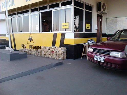 Policiais do Batalhão de Polícia Militar Rodoviária (BPRv) apreenderam na manhã de ontem (1.º) um veículo com 300 tabletes de maconha no município de Peabiru, interior do Paraná. O volume total do entorpecente é de aproximadamente 240 quilos.
