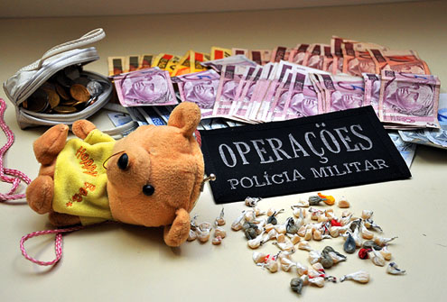 Segundo o soldado Jolber, um morador, quando viu a viatura, chamou os policiais e contou que em uma cancha de esportes estava acontecendo a venda de drogas. “Com as características das pessoas, fizemos a abordagem e encontramos as duas abraçadas. Imediatamente chamamos uma policial feminina para fazer a revista”, contou o policial. Com Edineia, escondidas em um ursinho de pelúcia, estavam 55 pedras de crack e algumas notas trocadas. Susane, levava apenas três pedras escondidas no sutiã. “Na casa delas encontramos mais 25 pedras e o restante do dinheiro”, contou Jolber. Um rapaz, usuário de drogas que estava negociando com elas na hora da abordagem foi detido, e logo em seguida liberado.