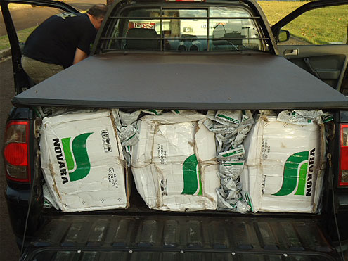No final da tarde de sábado (04), após receber denúncia de contrabando de agrotóxicos originários do Paraguai, policiais federais do Núcleo de Fazendária, encontraram em Santa Terezinha de Itaipu, uma Saveiro, de cor preta, carregada com herbicidas de origem chinesa.