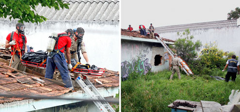Conforme foi apurado pela perícia, o casal já estaria morto há três ou quatro dias. Os policiais contaram que havia possível marca de tiro no braço da moça. Os corpos foram retirados somente à tarde, com ajuda dos bombeiros, pelo telhado.