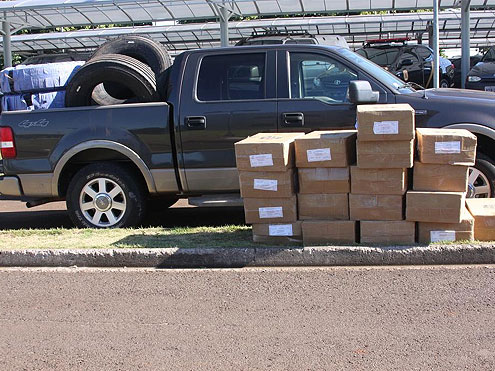 Na tarde de domingo (04), a Delegacia de Polícia Federal em Foz do Iguaçu apreendeu grande quantidade de cigarros falsificados e pneus de caminhões.