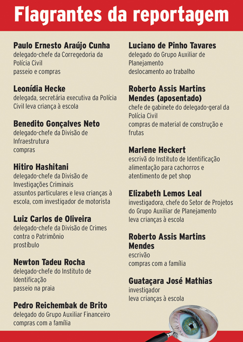 O chefe da Subdivisão de Transporte e Manutenção da Polícia Civil, delegado Adriano Admir da Cruz Ribeiro, explicou que o uso das viaturas é fiscalizado pelos delegados das unidades. Ele disse estar surpreso com o uso pessoal das viaturas e garantiu que nunca havia recebido denúncias a esse respeito. “Se houver o mau uso ou não houver justificativa plausível, existe a responsabilidade administrativa e talvez até responsabilidade penal”.