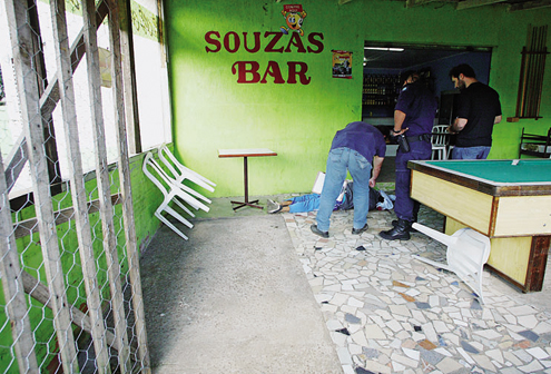 Enquanto trabalhava, no início da tarde de ontem, Veríssimo Fernandes Quevedo, 54 anos, foi executado com oito tiros dentro do seu bar, na Rua Miguel Jarek, no bairro Quississana, em São José dos Pinhais. O homem foi atingido por três tiros na cabeça e outros nas costas e no antebraço.