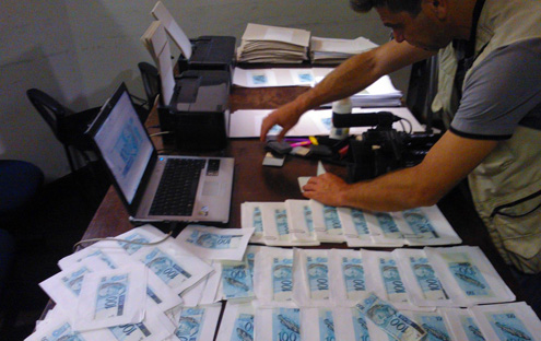 No momento em que fabricava notas falsas de R$ 100, Valdemir Zen da Paixão, 36 anos, foi surpreendido por policiais do Centro de Operações Policiais Especiais (Cope). Ele foi preso na tarde de quarta-feira dentro de casa e disse que aprendeu a fazer cédulas falsas no xadrez. O comerciante Timoteo Shielfelbein Siqueira, 32 anos, foi detido suspeito de comprar notas.