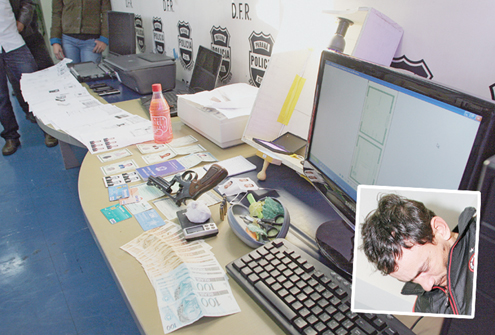 No local foram apreendidos um computador com diversos arquivos para impressão de cédulas de identidade em branco, uma impressora, tinta reagente itens de segurança que são verificados sob luz negra, além de dados pessoais e fotografias de várias pessoas.